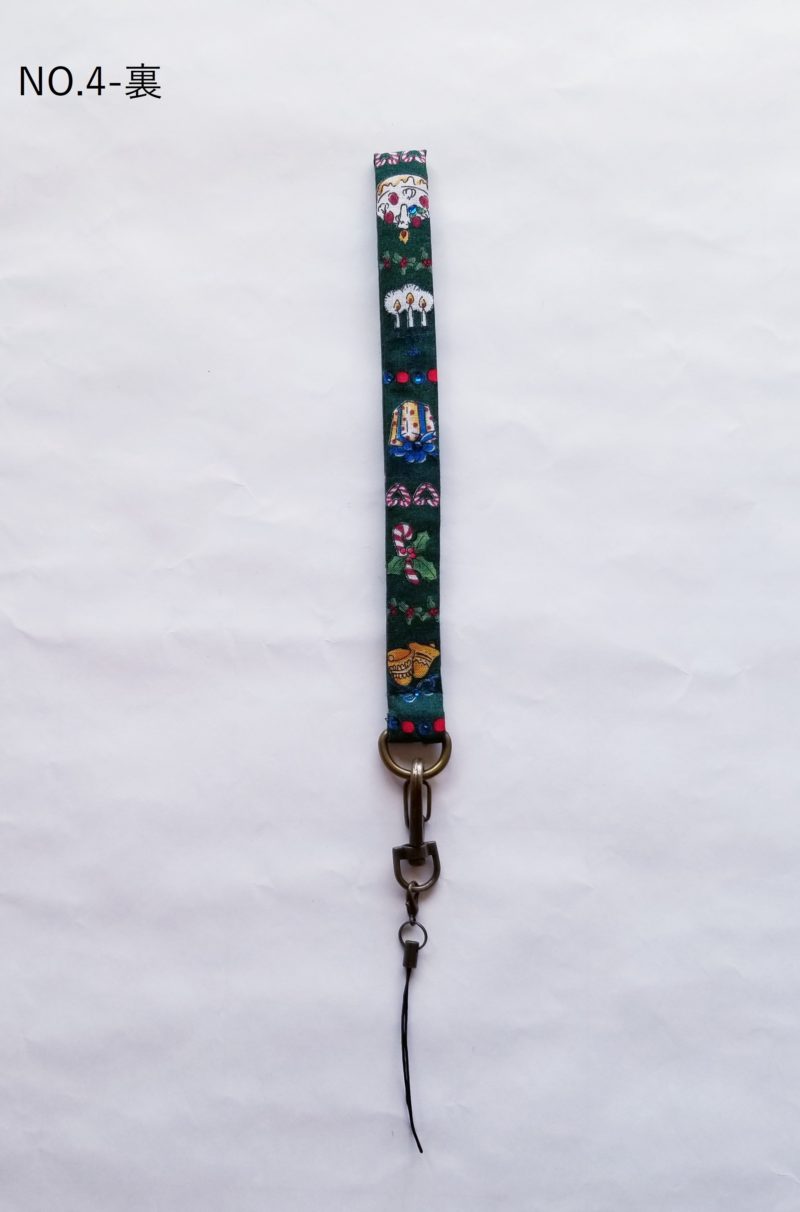 クリスマス柄の生地で、スマホストラップを製作いたしました。