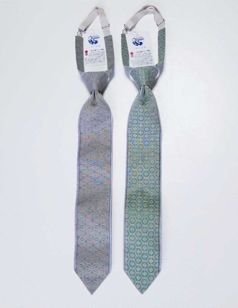 日本伝統の素材の畳のヘリで、素敵な 結ぶ必要のない サイズ調整が可能なネクタイ・名刺カードケースを製作いたしました。