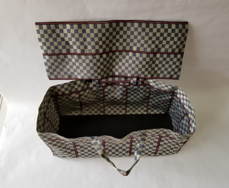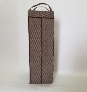 日本伝統の素材の畳のヘリで、素敵な お酒・ワインなどを入れることができ、中が見えないように共生地でフタ付きのバッグを製作いたしました。
