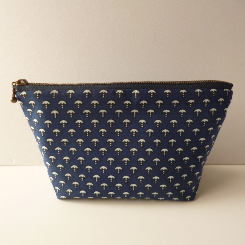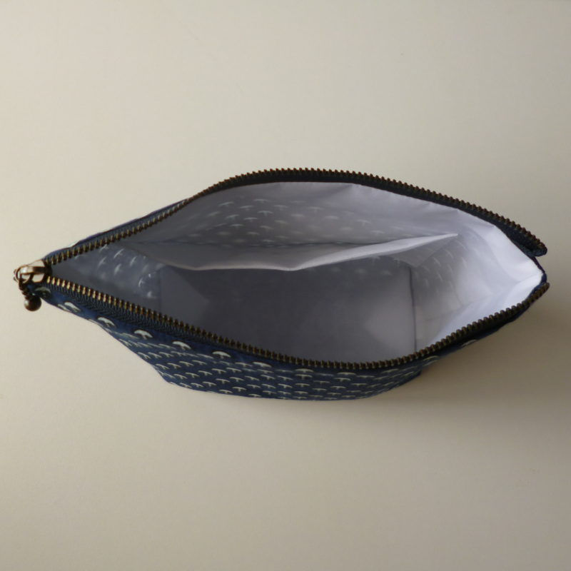 紺地にフクロウ柄のポーチになります。福を呼ぶ、縁起物として愛されているフクロウ