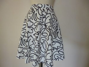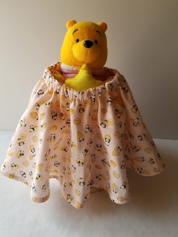 ピンク地にパンダ柄・色々なパン柄などで、ダブルガーゼのサーキュラースカート又は、ケープとしても使用なれるように仕立てました。